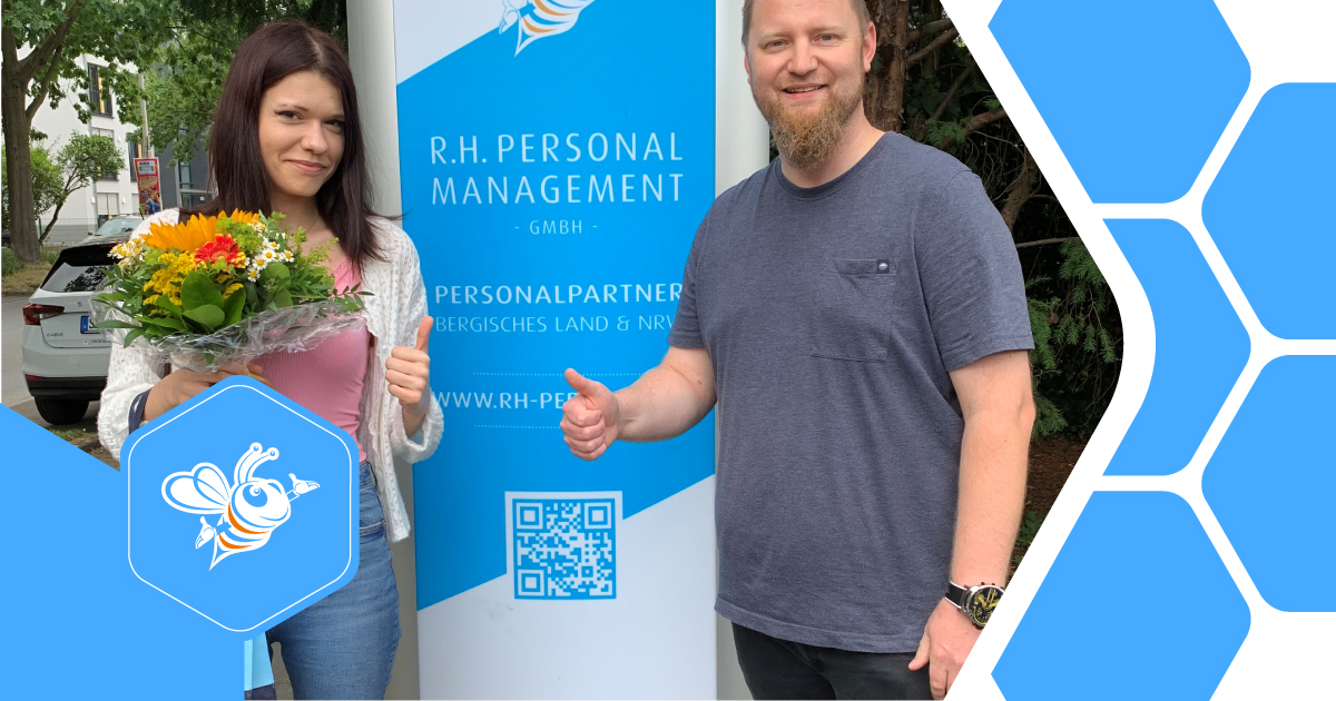 Wir freuen uns weiterhin mit Frau Niezgoda, die zum 01.08.2023 vom Kunden übernommen wurde. Wir wünschen unserer (ehemaligen :) Kollegin einen guten Start im neuen Beschäftigungsverhältnis und persönlich Alles Gute!